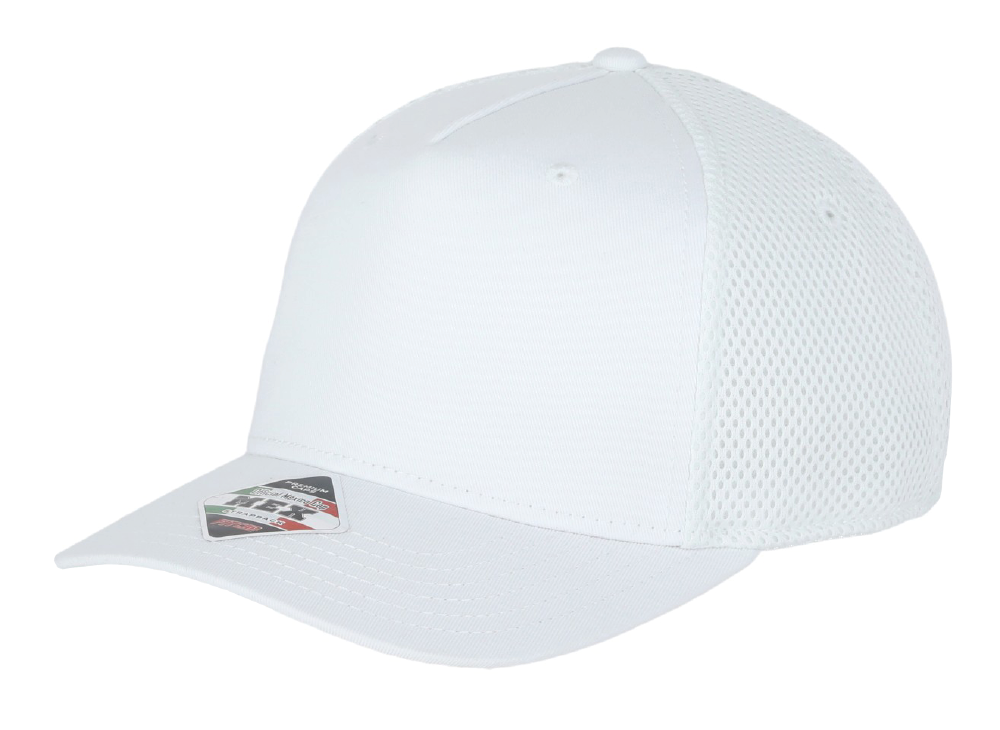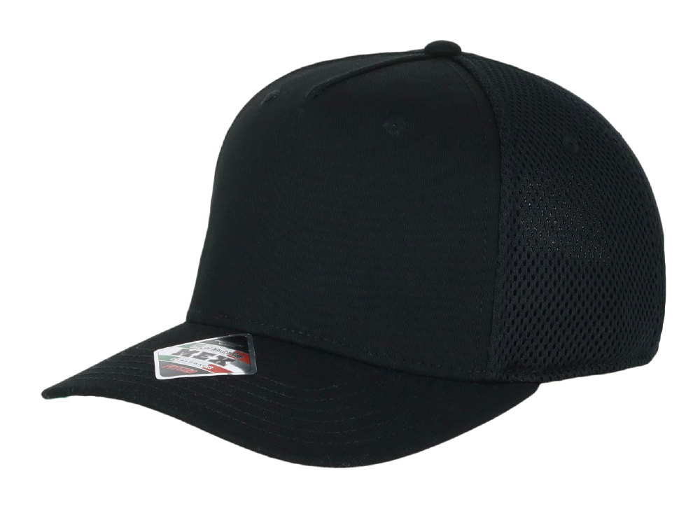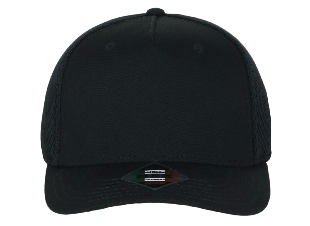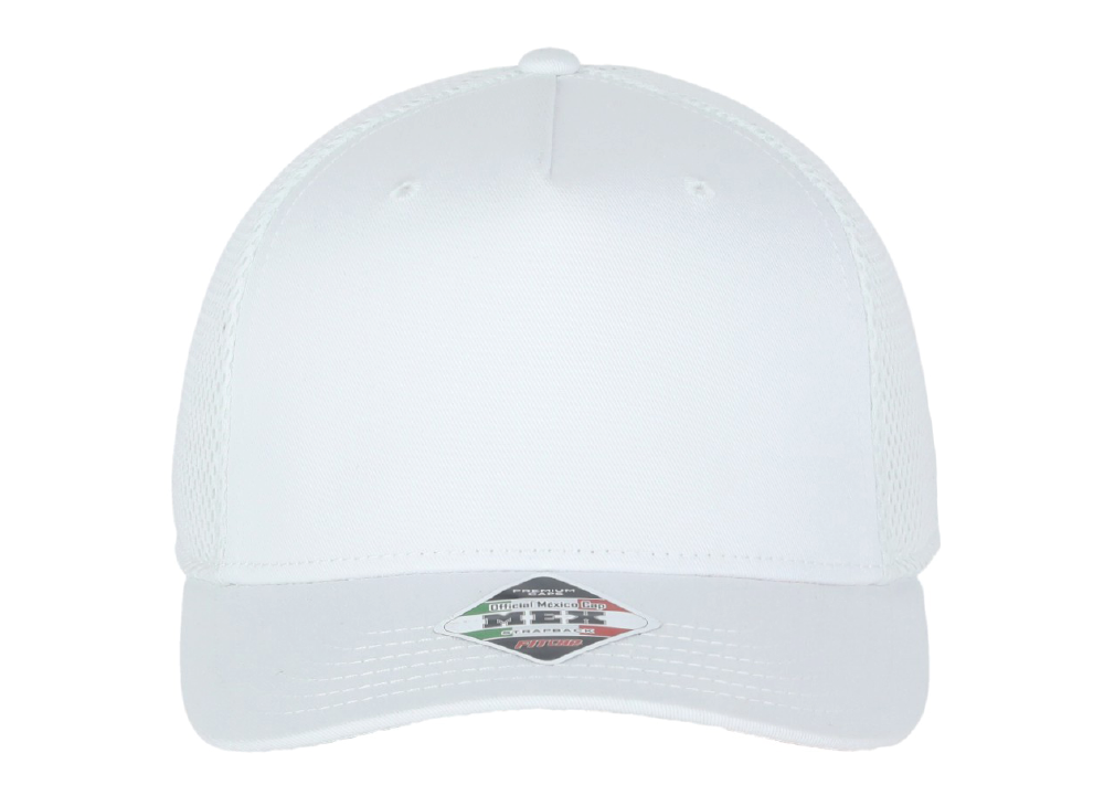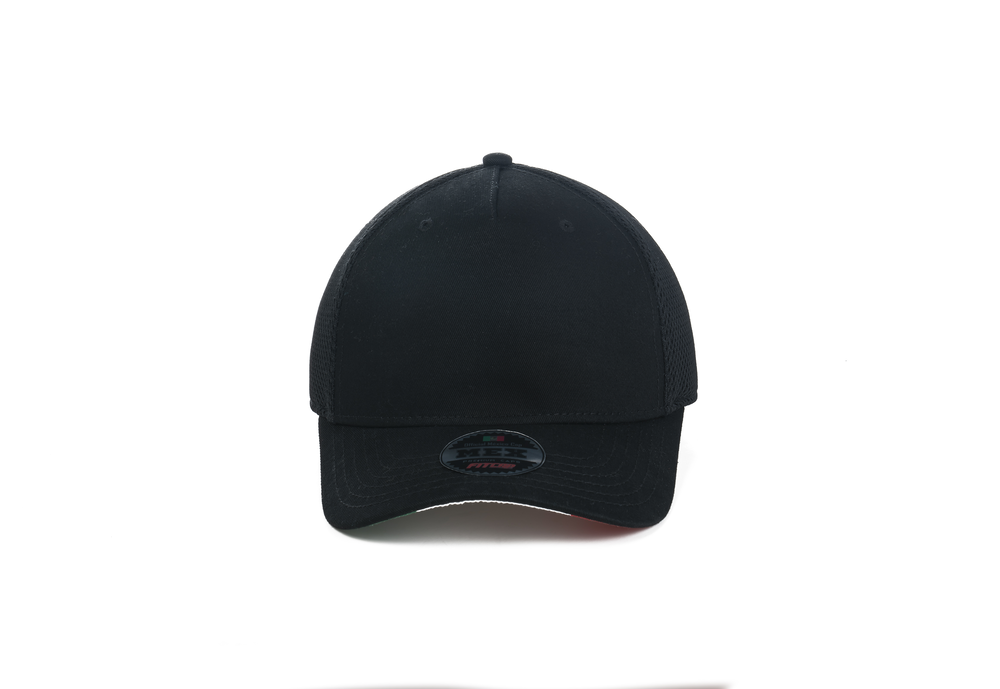 Gorra premium marca FITCAP 100% poliéster con ajuste de cinturon antipelusa, gajos laterales microperforados, banda interior absorbente, 6 gajos, visera curva.