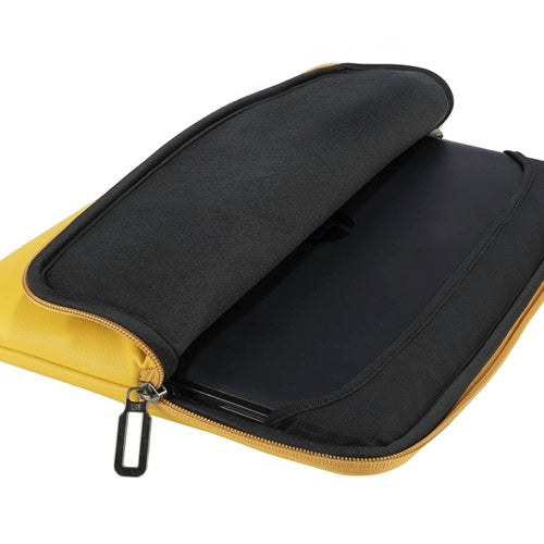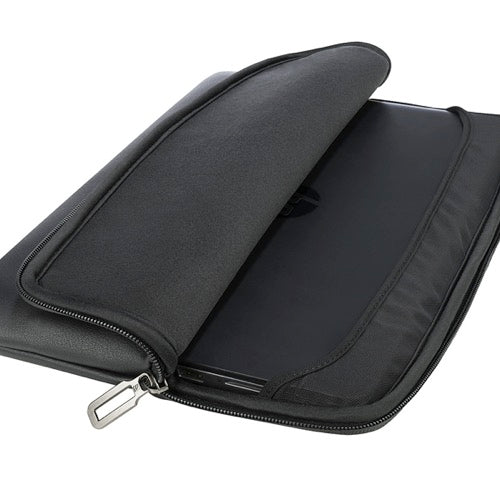 Funda de cuero sintético para laptop de 13” y 14”: elegante, suave al tacto y con acolchado de espuma viscoelástica que protege contra golpes y caídas. Su banda Anti-Slip System® mantiene el equipo firmemente en su lugar, mientras el forro interior resistente a los arañazos asegura una protección completa con un toque de estilo profesional.